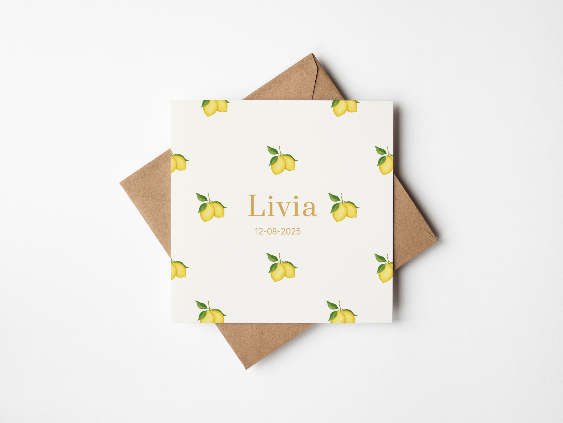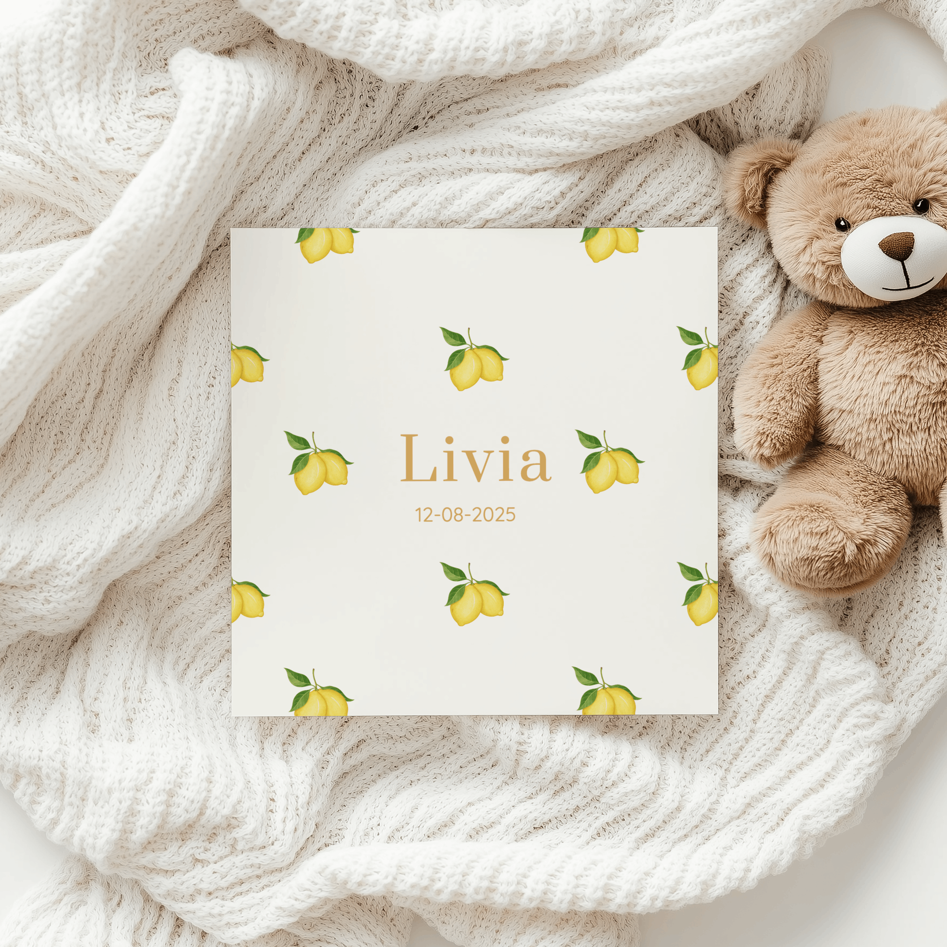 zomers en fris citroenthema met verfijnde, goudkleurige typografie.