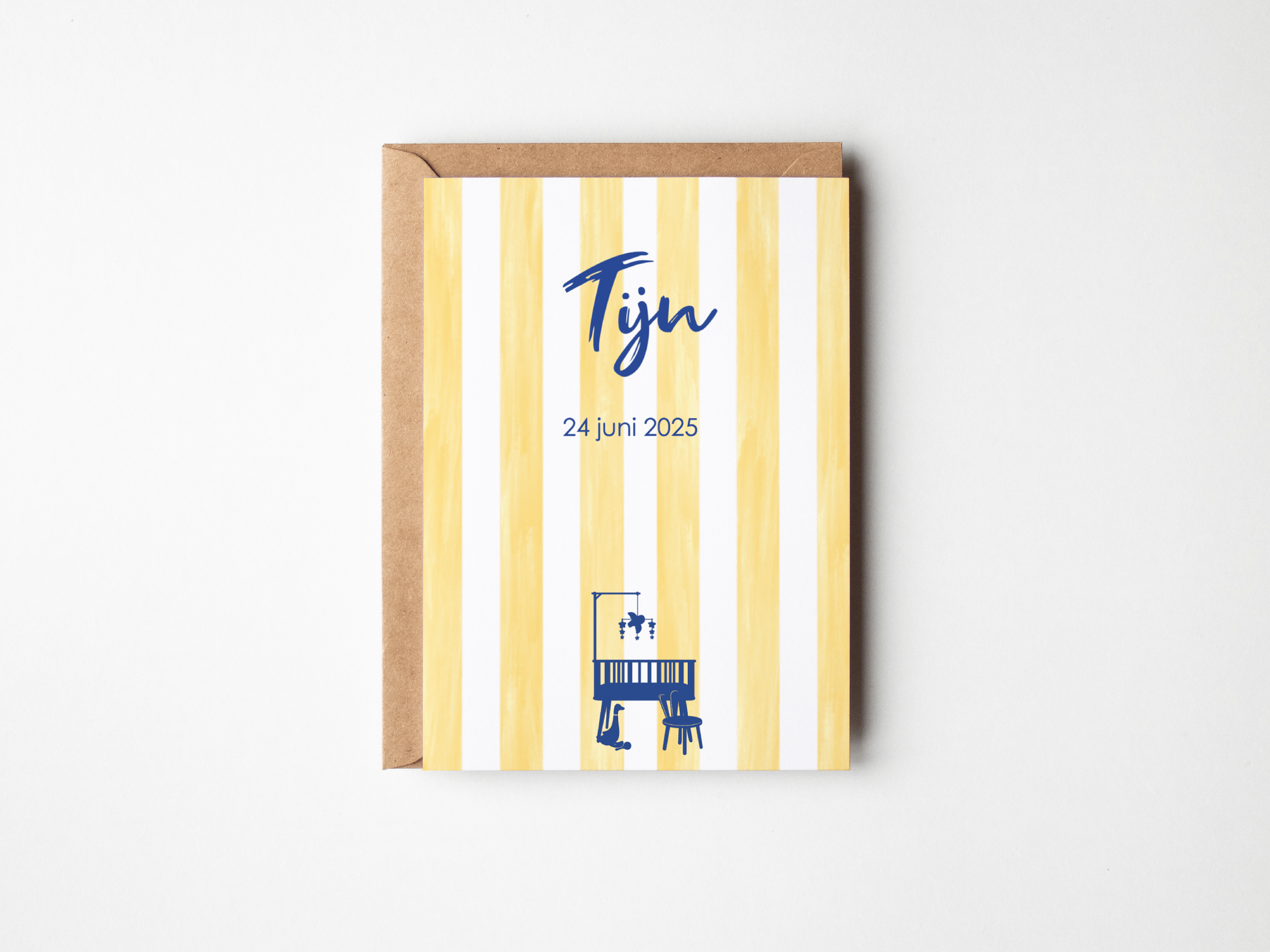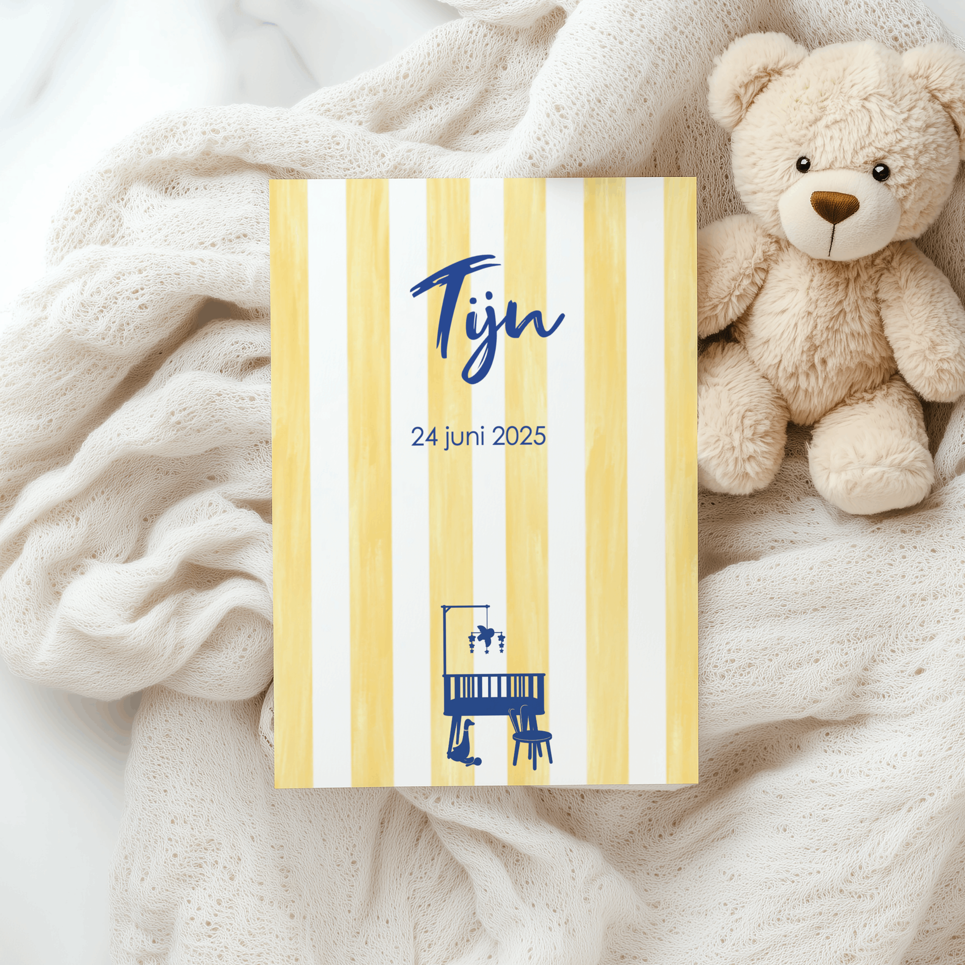 Geboortekaartje Jongen Geel Gestreept | Modern met Wiegje